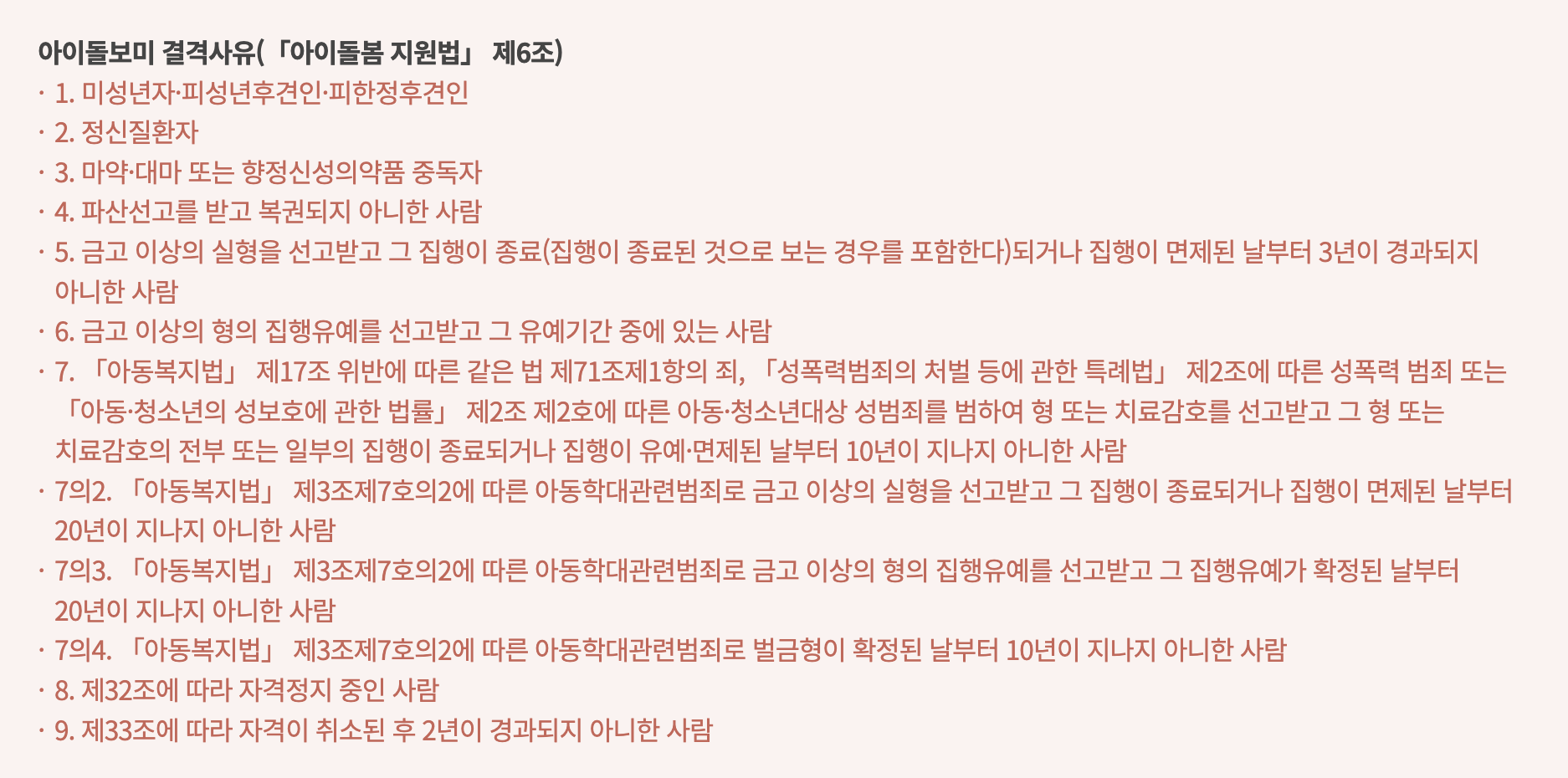 (단, 결격사유에 해당하는 경우 아이돌보미 지원 자격이 안되며 아이돌보미로 활동할 수 없습니다.)