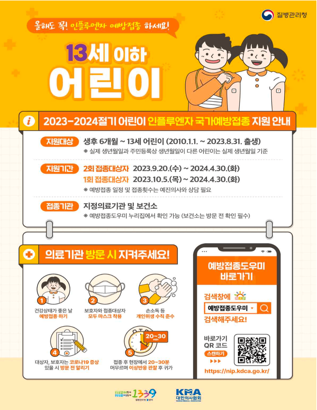 1. 어린이 : 생후 6개월 ~ 13세 어린이 (2010. 1. 1. ~ 2023. 8. 31. 출생)